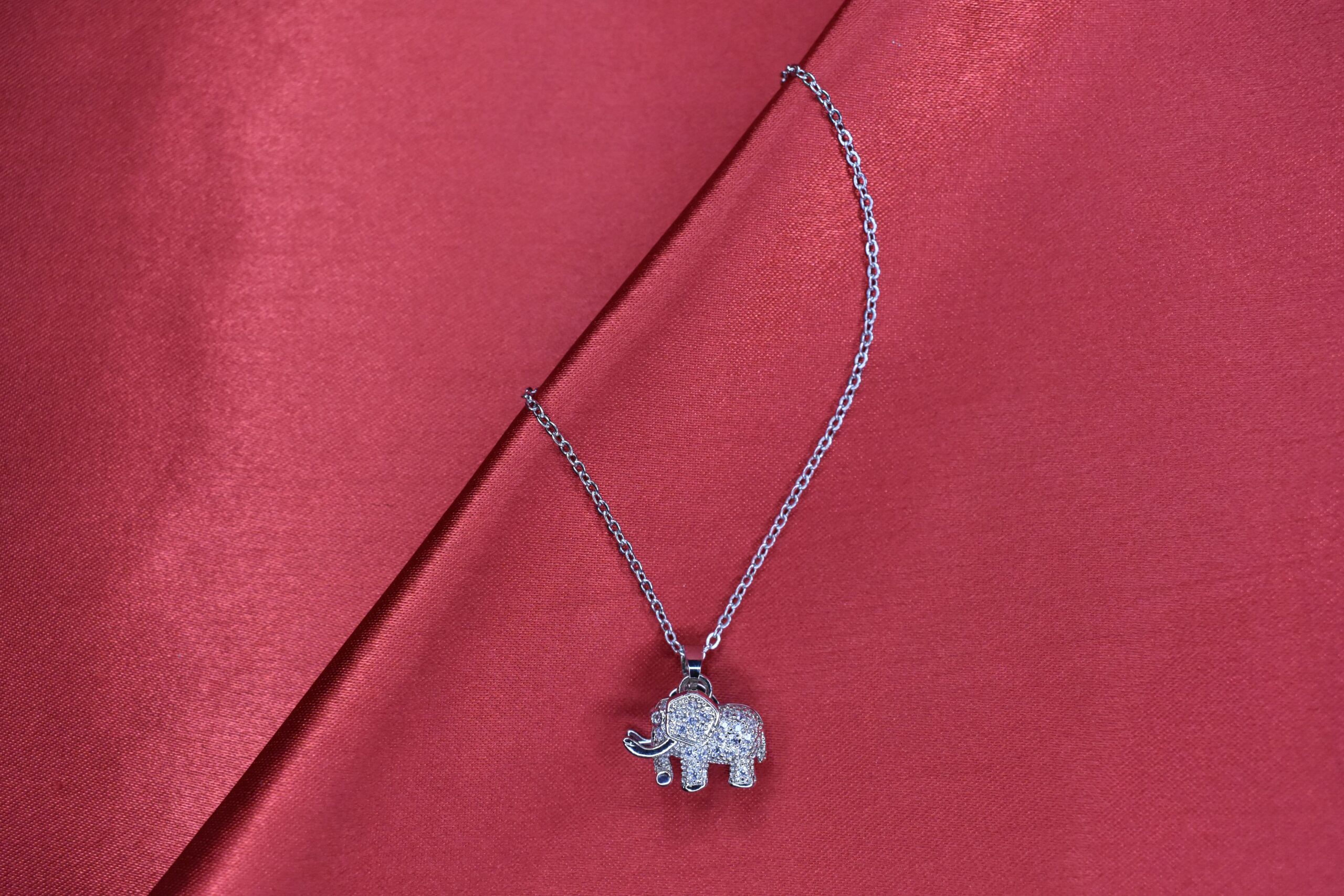 This exquisite silver elephant neck chain, features a beautifully crafted elephant pendant adorned with sparkling white stones. The silver-plated chain adds a touch of sophistication, making it an ideal accessory for formal events and parties. Its unique design combines elegance and charm, ensuring it stands out as a fancy statement piece for any occasion.